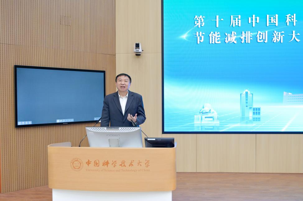 裴刚在致辞中表示,自2015年起,中国科大节能减排创新大赛已连续举办十年,参赛学生范围由最初的工程科学学院特别是热科学和能源工程系,逐步扩展至环境、材料、化学、信息及人文等多个院系和专业。每年大赛收到各类作品总计60余件,且累计向全国赛推荐了100余件优秀作品,成果喜人。今年,由我校和安徽省能源研究会联合主办、工程科学学院具体承办的第一届安徽省大学生节能减排社会实践与科技竞赛的成功举行,为来自全省高校的节能减排参赛作品搭建了一个相互学习交流的重要平台。至此,我校已经形成了一个涵盖校赛、省赛和国赛的完整的节能减排赛事体系。他衷心感谢学校领导和相关部门对大赛给予的支持,勉励同学们为国家的节能减排事业贡献力量。