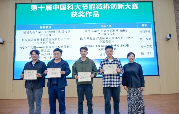 10月16日下午,第十届中国科大节能减排创新大赛暨第十七届全国大学生节能减排社会实践与科技竞赛颁奖典礼在西区第三教学楼3B103隆重举行。校党委书记舒歌群出席典礼并为获奖团队颁奖,校团委副书记兼创新创业学院副院长李海欧,工程科学学院党委书记兼副院长裴刚、党委副书记牟玲,热科学和能源工程系党总支书记胡芃、工程科学实验教学中心主任倪向贵、科技传播系党总支书记于全夫、环境科学与工程系团委书记蔡琛、获奖团队代表参加了颁奖典礼。