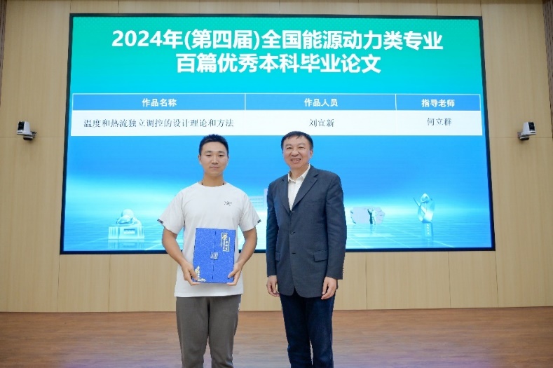 颁奖环节,舒歌群为在第十七届全国大学生节能减排社会实践与科技竞赛中获得特等奖的张卓君团队以及2024年(第四届)全国能源动力类专业百篇优秀本科毕业论文(设计)获得者刘宜新进行颁奖;裴刚、李海欧为在第十七届全国大学生节能减排社会实践与科技竞赛中获得一、二、三等奖的姚禹团队、王传宇团队、陈博涵团队、阿茹娜团队、陈肯团队进行颁奖。牟玲、胡芃、于全夫、倪向贵、蔡琛为第十届中国科大节能减排创新大赛的获奖团队进行颁奖。