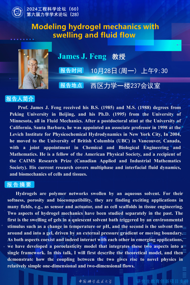 2024工程科学论坛(60)“Modeling hydrogel mechanics with swelling and fluid flow”