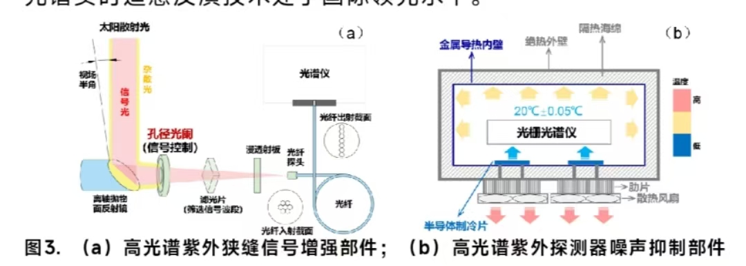 图3. (a)高光谱紫外狭缝信号增强部件;(b)高光谱紫外探测器噪声抑制部件
