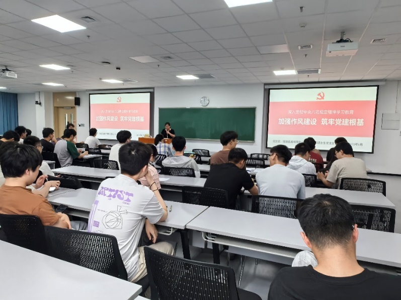 为深入贯彻中央八项规定精神学习教育,进一步强化党员纪律意识,6月18日下午,精密机械与精密仪器系2024级硕士生党支部在高新区GH-206会议室召开“加强作风建设、筑牢党建根基”主题党日活动。活动由党支部书记高鹏燕同学主持,支部全体党员参加学习。