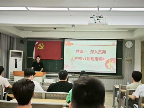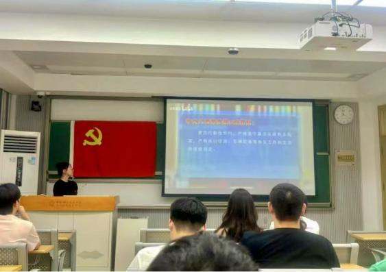 为深入贯彻落实党中央全面从严治党战略部署,切实增强党员的纪律意识和作风建设自觉性,6月25日晚,近代力学系2024级硕士生第一党支部在西校区3A104教室举办深入学习中央八项规定精神主题党课,支部书记王莉媛同志主讲。
