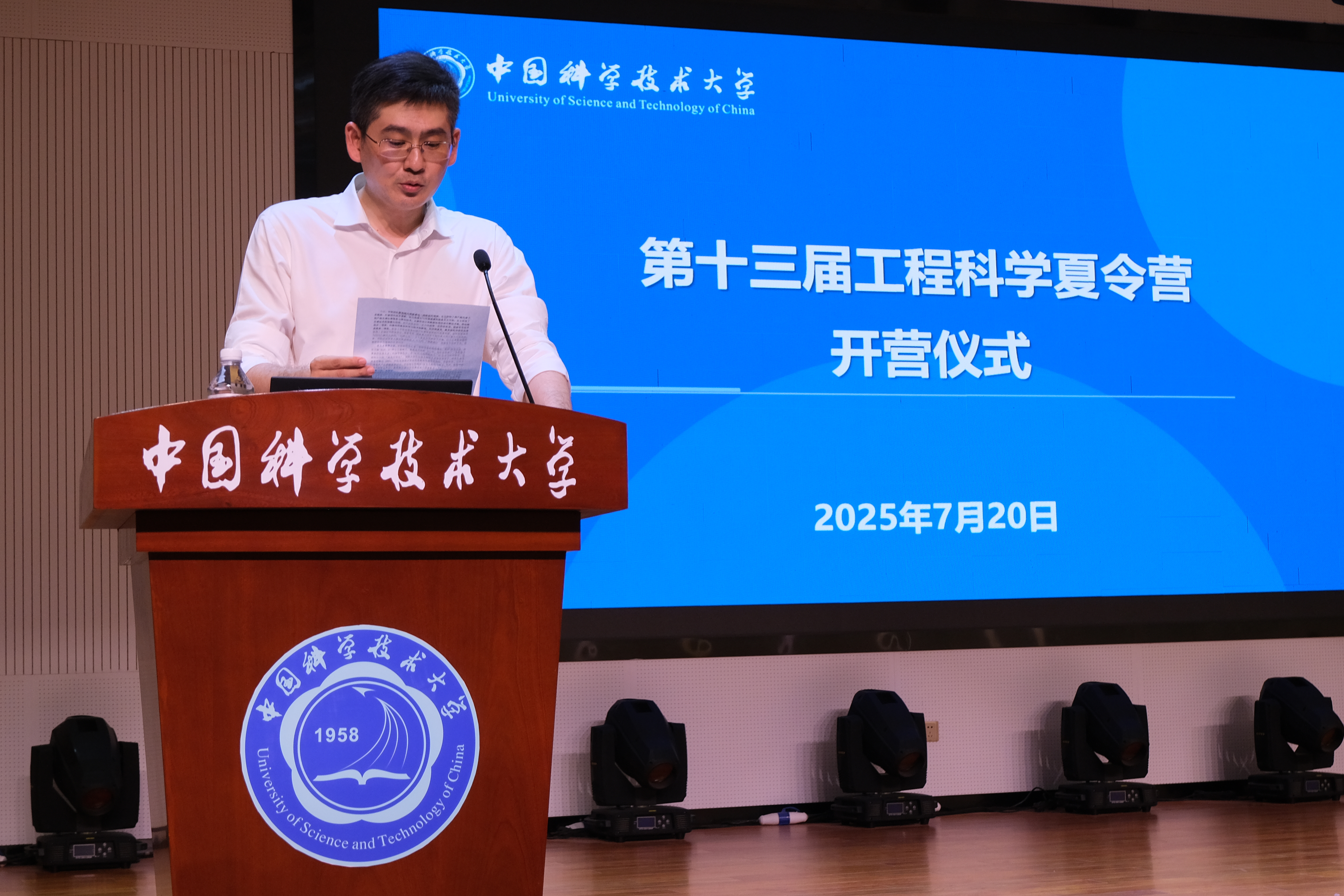 7月20日下午工程科学学院开营仪式上,副院长刘诚教授对营员们的到来表示热烈欢迎。他表示工程科学是连接理论与实践的桥梁,是贯穿基础研究与应用的纽带,从力学到航空航天,从精密机械机器人到天文光学,再到环境遥感,从生物工程到新兴交叉领域,学院的研究致力于国家重大需求,又面向世界科技前沿,希望学员们学有所获。