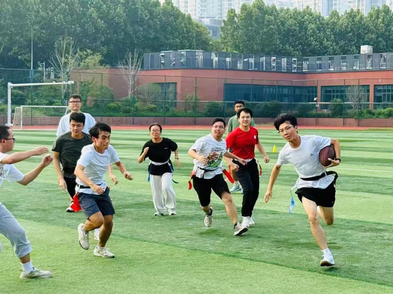 为庆祝中华人民共和国成立76周年,营造积极向上的校园体育文化氛围,帮助同学们在学业之余舒缓压力、强健体魄,10月8日下午,由院团委主办,院学生会联合校学生橄榄球协会承办的第四届“‘橄’为人先”腰旗橄榄球联赛在西校区田径场活力开赛。院团委书记蒋小榕、副书记樊洋洋到场观看并为选手加油助威。