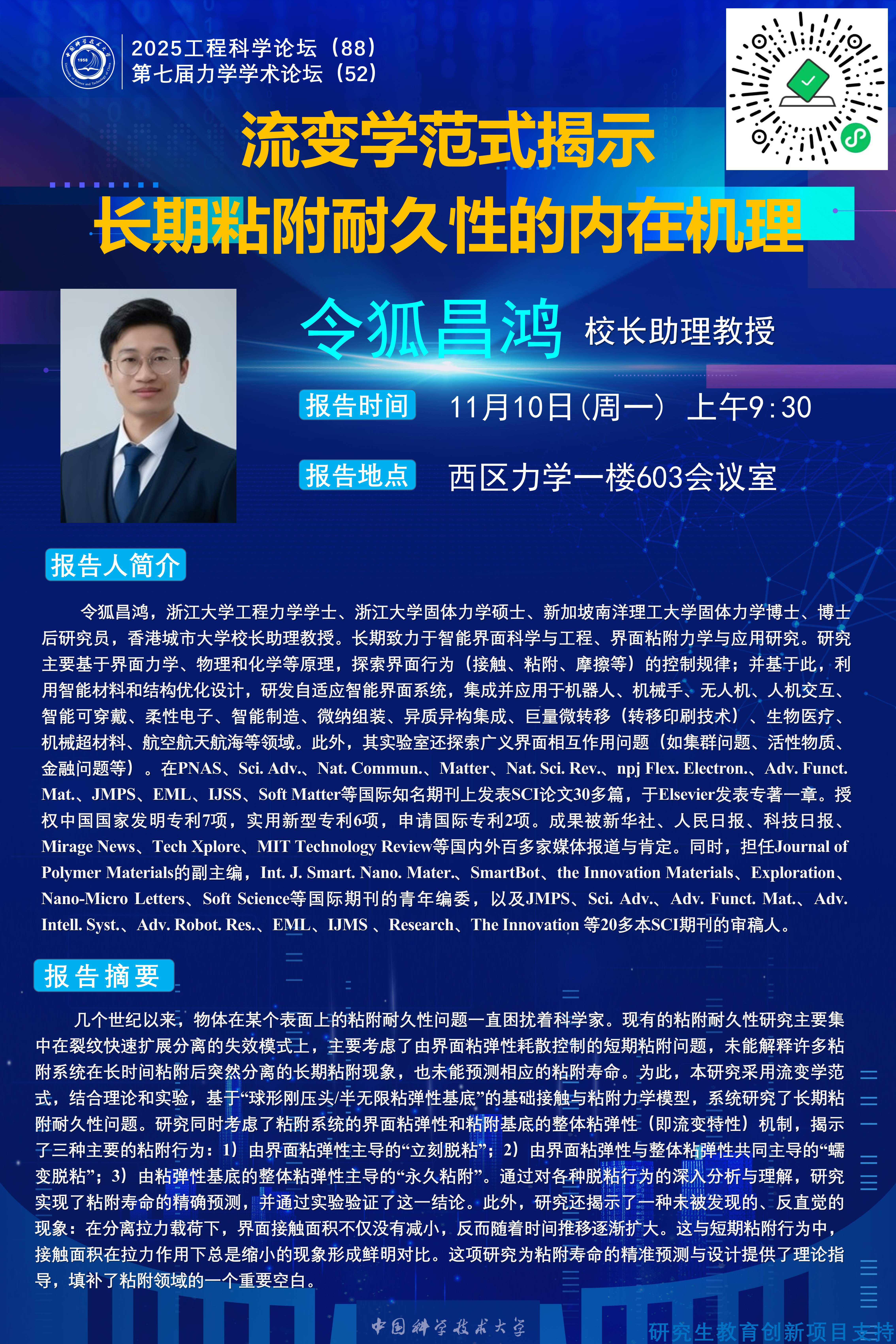 2025工程科学论坛(88)“流变学范式揭示长期粘附耐久性的内在机理”