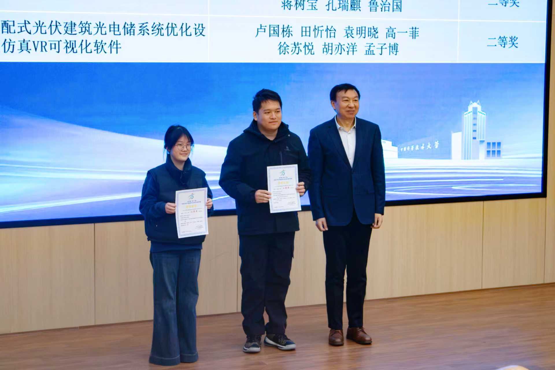 随后,校党委书记舒歌群为大赛组委会颁发“优秀组织奖”,并为两位荣获“2025年(第五届)全国能源动力类专业百篇优秀本科毕业论文(设计)”奖项的同学颁奖。
