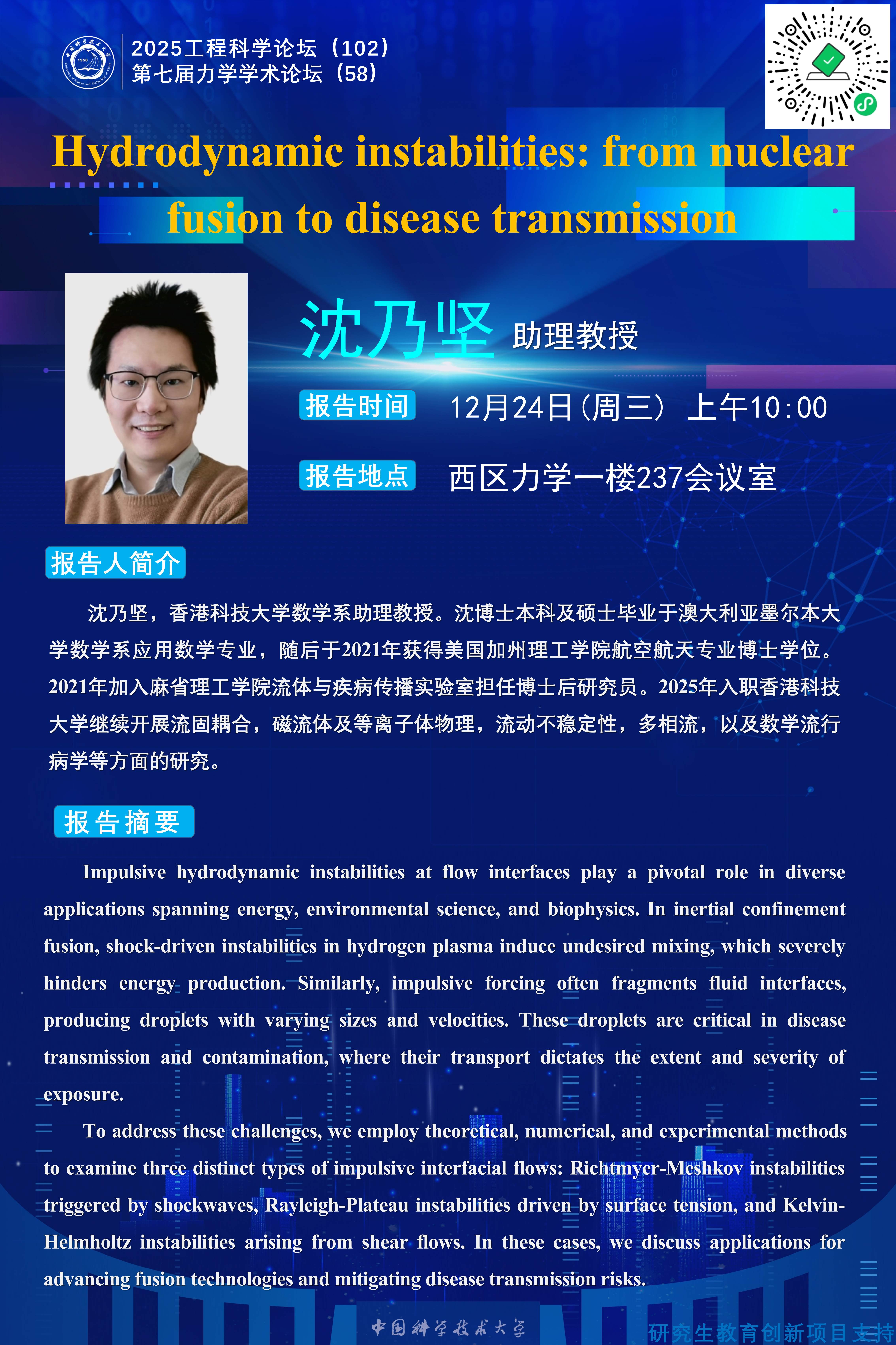 2025工程科学论坛(102)“Hydrodynamic instabilities: from nuclear fusion to disease transmission”