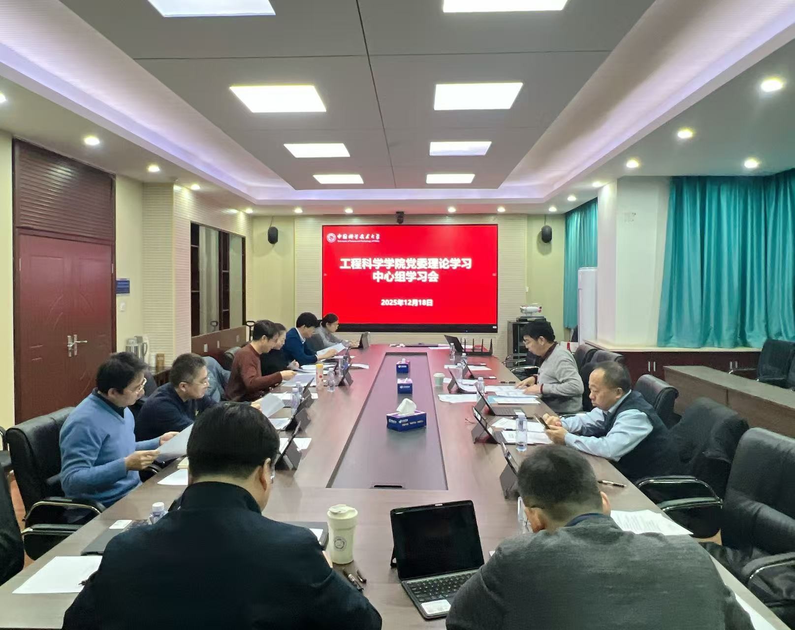12月18日下午,院党委理论学习中心组举行2025年第八次集体学习,学习党章及习近平总书记关于全面依法治国工作的重要指示精神,传达校党委关于党的二十届四中全会精神学习宣传相关安排。学习会由学院党委书记裴刚主持,全体党委委员参加会议。