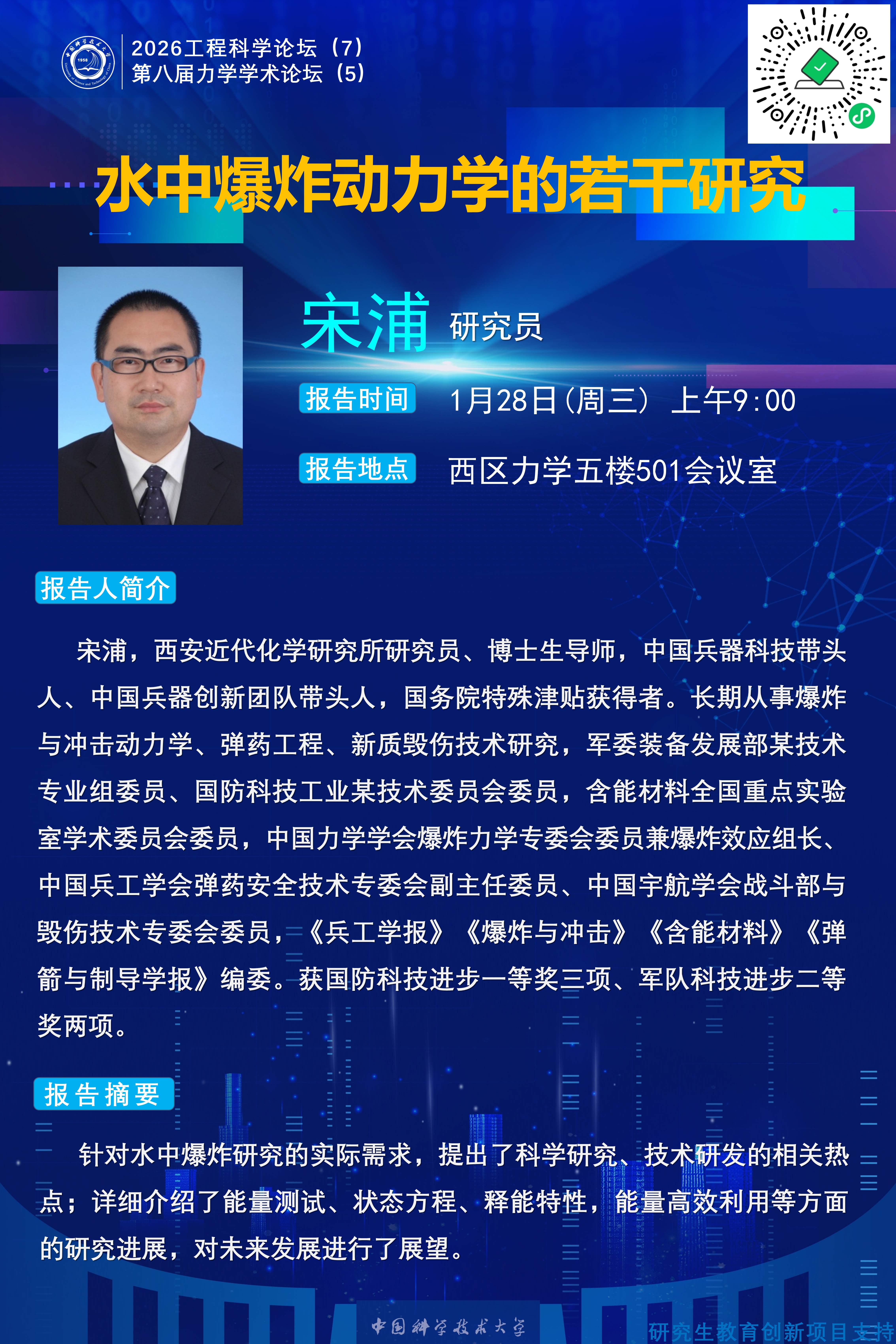 2026工程科学论坛(7)“水中爆炸动力学的若干研究”